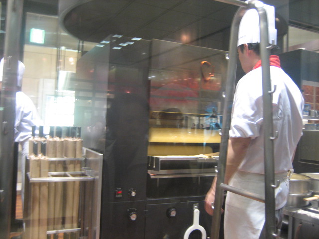 生地をかけながら焼いているシェフの姿を