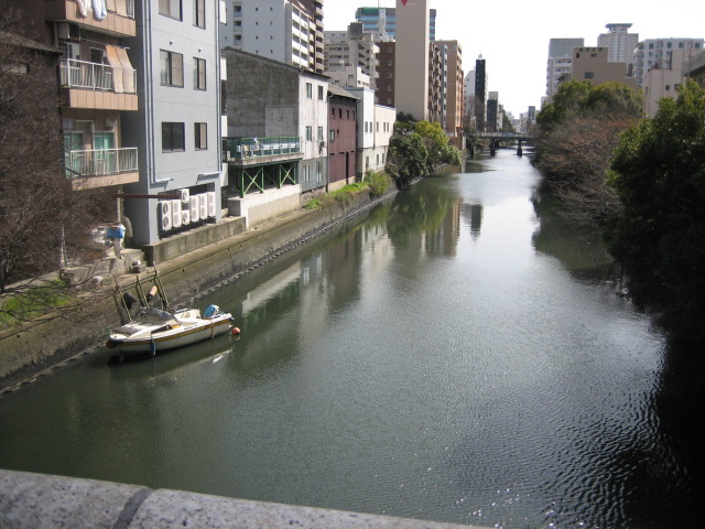 堀川の五条橋の上から眺めた景色。