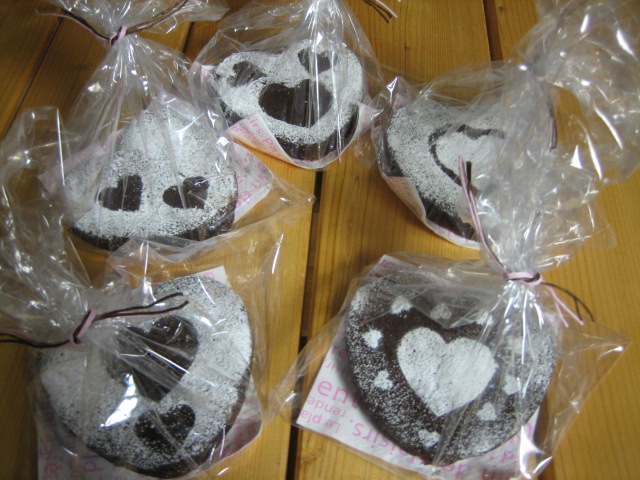 ハートの形のガトーショコラに粉糖でハートのステンシル。