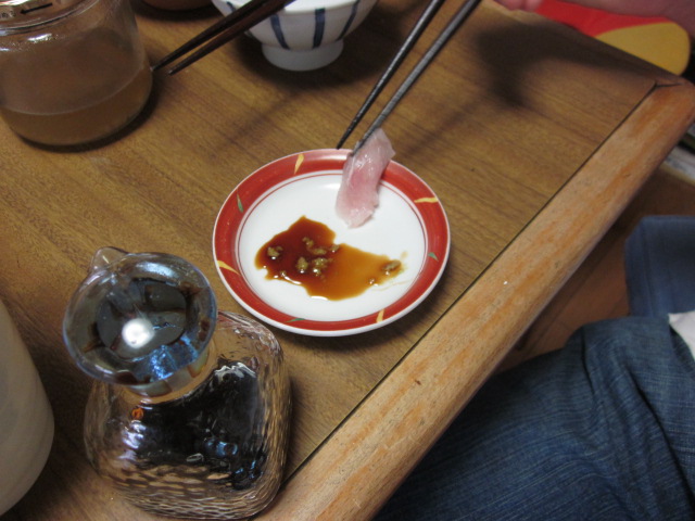 たまへいが、お刺身用の切り身の皮をはいで、お刺身を作りはじめると、