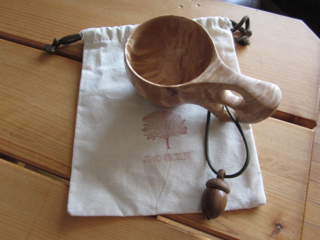 本物は、白樺のこぶから作られ、持ち手に鹿の皮ひもがついています。
