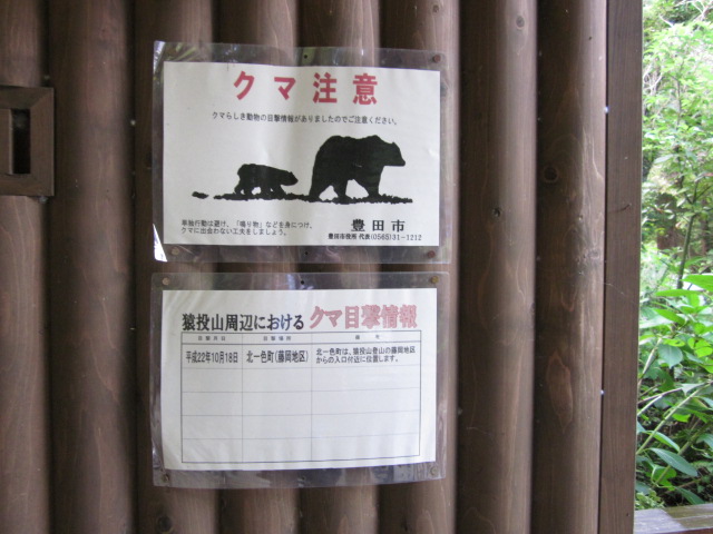トイレの壁には、クマ注意の貼り紙が・・・。