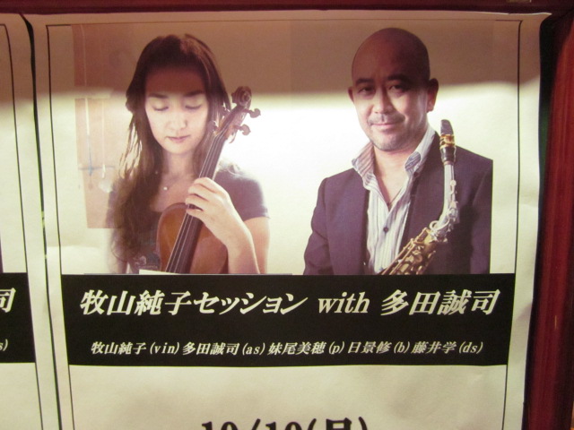 バイオリンとサックス、フルート、ピアノのセッション。