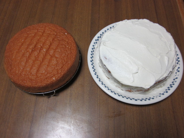 左側は、できそこないのスポンジケーキです。