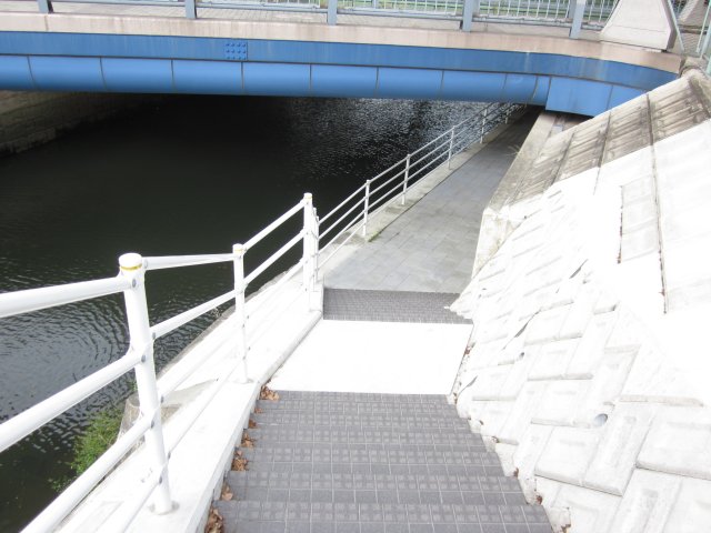 川の土手の遊歩道は、黒川の溝川の悪臭が漂い、排水が染み出している箇所もあり、