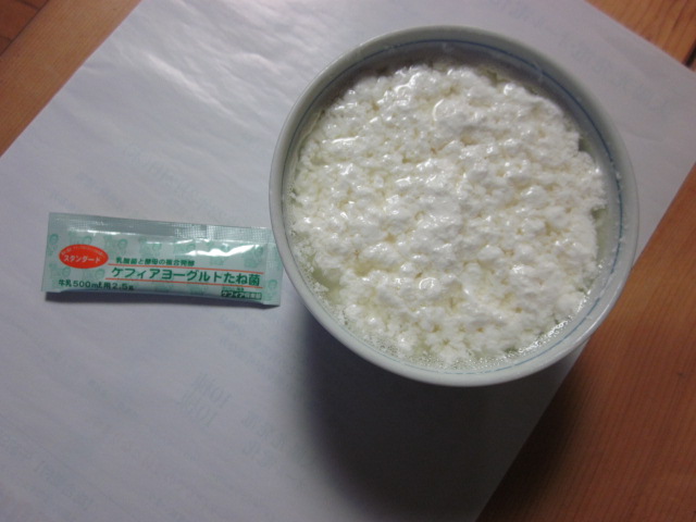随分前に貰った粉末のケフィアヨーグルト菌があったので、作ってみることにしました。