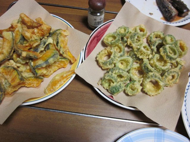 かぼちゃとゴーヤの天ぷら 抹茶塩添え