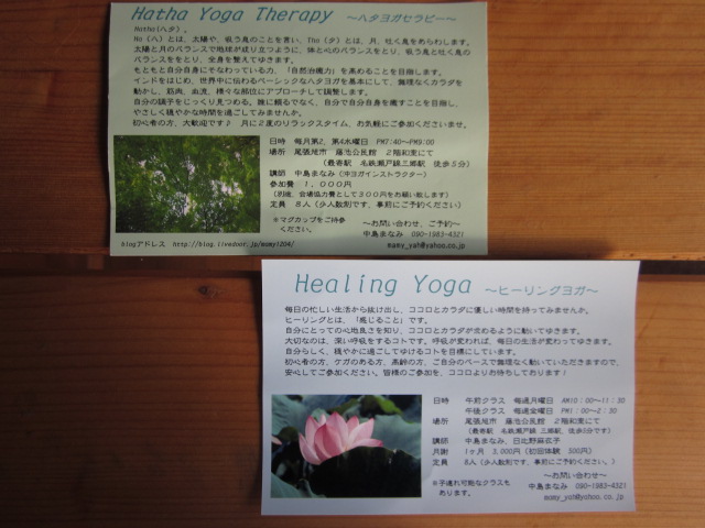 お店のカウンターに置いてあったヨガ教室のはがきを