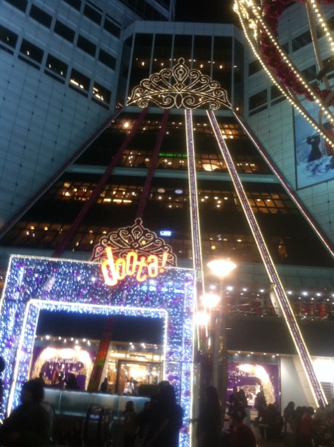 DOOTAのビルはひと足早く丸ごとクリスマスツリーです。
