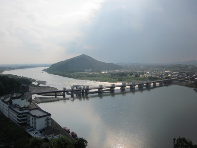 悠々と緑の水を湛えた木曽川と山の上に聳える犬山城が