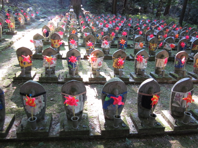 お地蔵様には風ぐるまが供えられ、