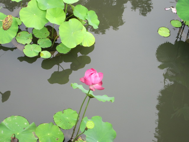 お墓参りのお寺の池に美しく咲く蓮の花に癒されました。