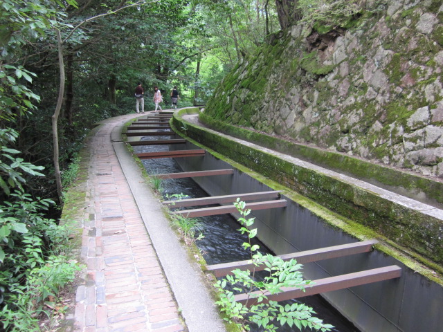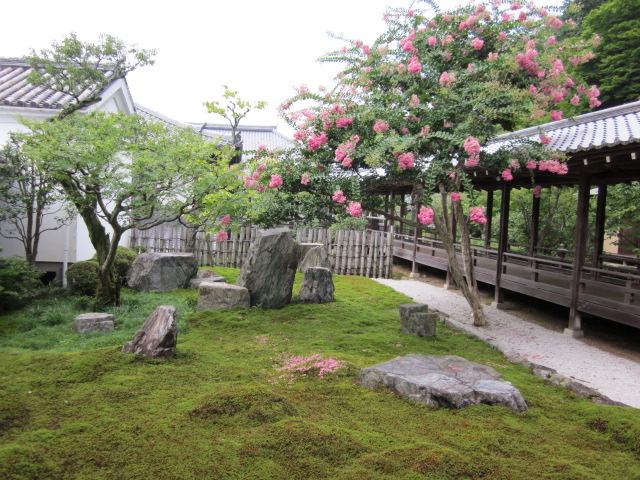 苔と石、そして夏に咲く百日紅の桃色の花。