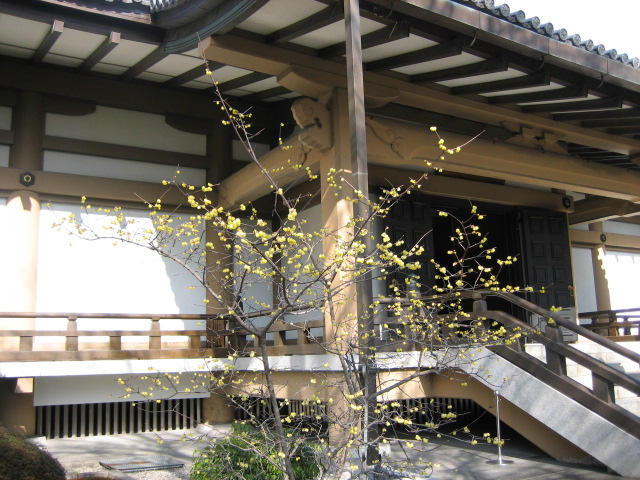 広隆寺の霊宝殿の前には、蝋梅が咲いていました。