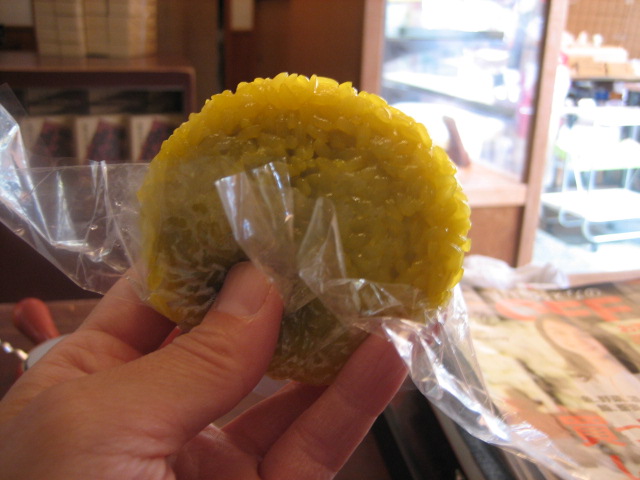 くちなしの黄色で染めたもち米をまぶして蒸しあげた
