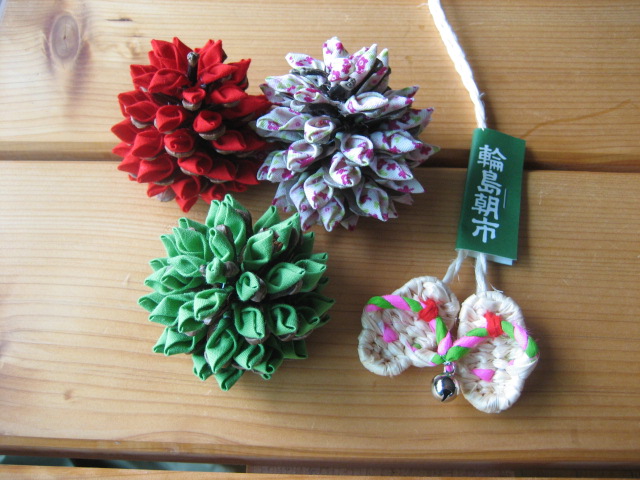 かわいいミニわらじに、松ぼっくり。