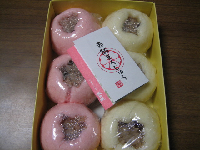 お饅頭の皮で赤飯を包んで蒸しあげたものです。