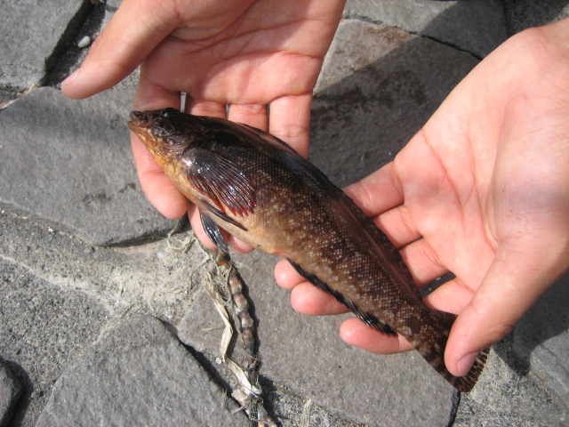 あいなめ4匹と小さなベラ1匹を釣り上げました。