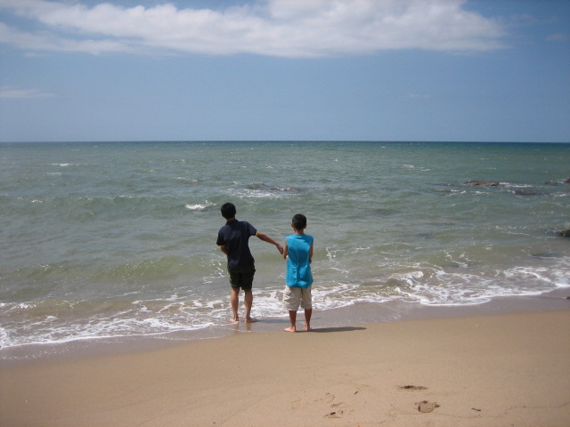 小人達は波打ち際ではしゃいで、靴下までびっしょり。