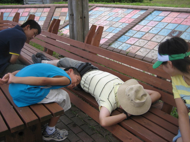 ガリバーが昼寝してる間に、小人達はベンチの端まで